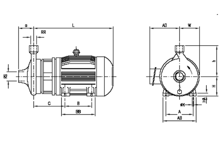 – Execução horizontal de sucção axial e recalque na vertical para cima