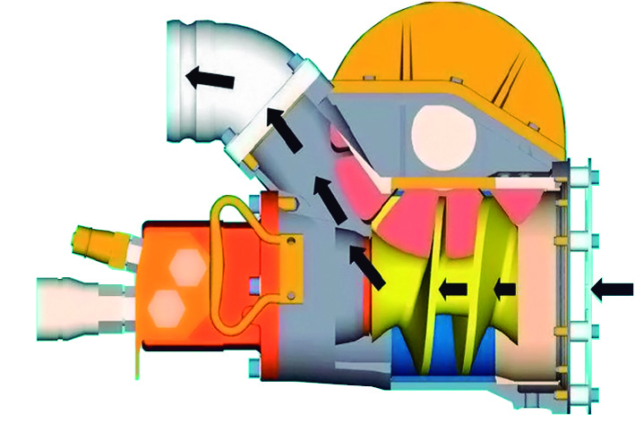 diâmetro e apresenta pressão máxima de saída de 12 bar, devido à injeção de água/vapor (opcional) na entrada e lâminas para