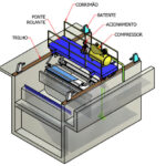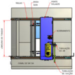 – Ciclo de operação: No início de cada ciclo a ponte é posicionada na extremidade posterior do tanque onde o braço raspador de Superfície está na posição “baixa”, no tanque e inicia-se o movimento. A ponte ao chegar na extremidade anterior do tanque, automaticamente estaciona e inicia-se o mecanismo de levantamento do braço e retorna com o braço recolhido até a outra extremidade, onde inicia-se novamente o ciclo. Os controles de parada e movimentação da ponte e do braço são feitos por chaves fim de curso.