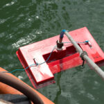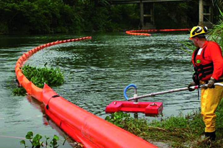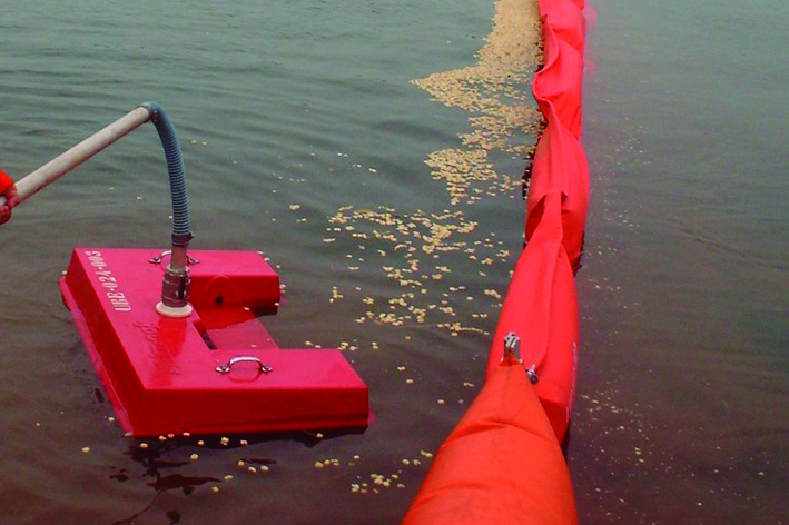Fabricado em fibra de vidro, é fornecido com haste que permite controle à distância. Este recolhedor de óleo atua em conjunto com uma bomba de sucção e recalque de líquidos mesmo com sólidos em suspensão, em vazões de até 55 m³/h.