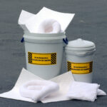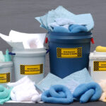 Os spill kits podem ser compostos por absorvedores sintéticos (feitos de polipropileno, em formato de mantas, barreiras, almofadas e rolos) e orgânicos (totalmente naturais), inclusive agentes de bioestimulação e opções biodegradáveis.