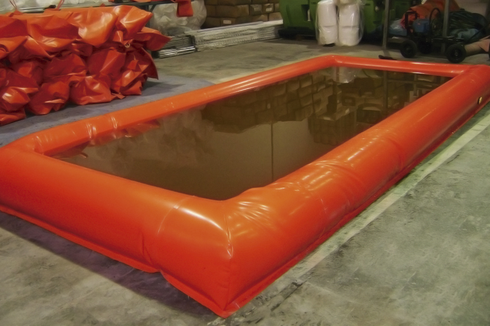 Sua montagem é rápida e fácil, é um tanque compacto e portátil usado principalmente para a contenção de líquidos que estejam vazando de outro recipiente ou de tombamento de caminhões-tanque. As câmaras laterais são infladas, criando zonas delimitadas para que o líquido seja contido para posterior transferência com segurança.
